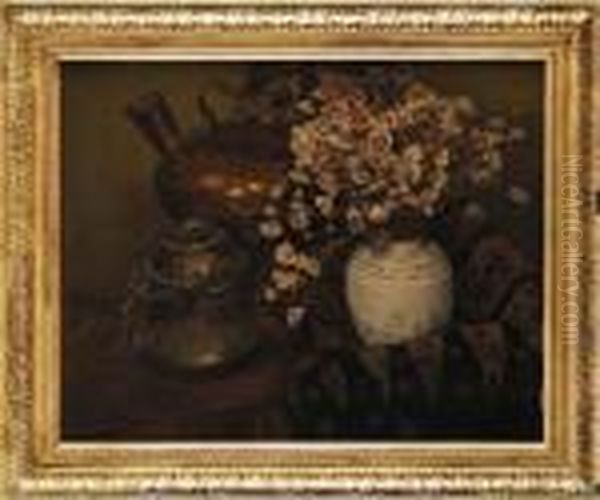 Nature Morte Au Bouquet De Fleurs Seches Et Cuivre