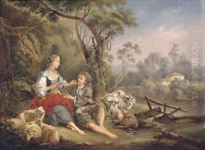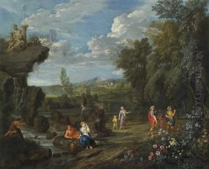 Idyllische Landschaft Mit Figurlicher Staffage Oil Painting by Norbert Joseph Carl Grund