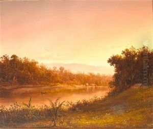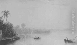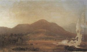 Miners By A Lake (believed To Be In The Gold Country Region Of The Sierras)