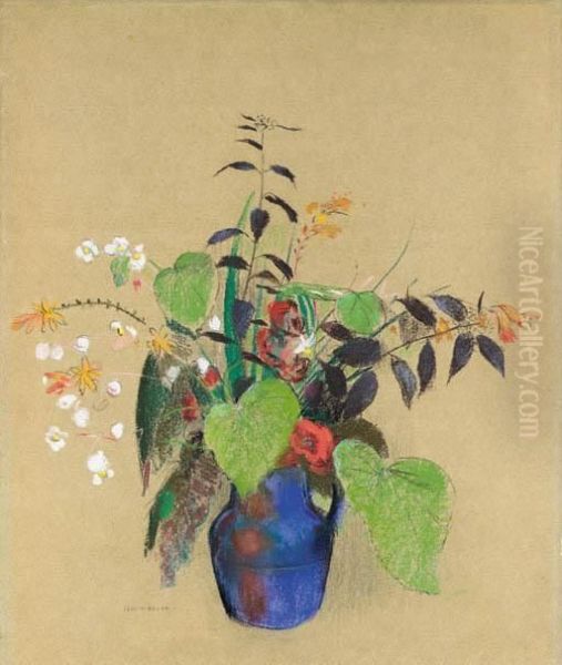 Fleurs Dans Une Cruche Bleue Oil Painting - Odilon Redon