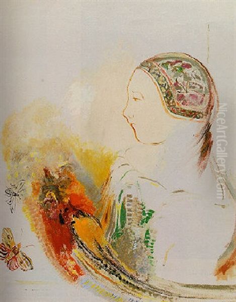 Profil D'enfant (profil De Femme Avec Oiseau De Paradis) Oil Painting by Odilon Redon