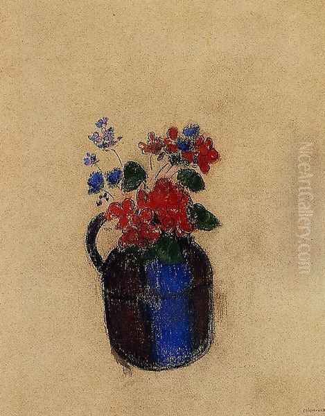 Small Bouquet In A Pitcher Oil Painting - Odilon Redon