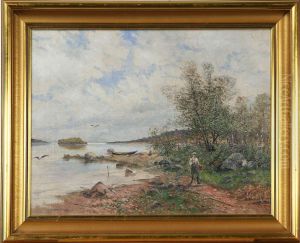 Strandlandskap Med Figur - Sommar, Signerad O Daterad O. Larsson 1900