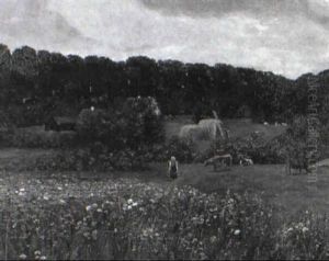 Dansk Hostlandskab Med Piger, Der Saetter Kornet I Traver