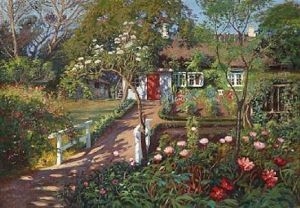Haveexteri+r Med Kvinde Siddende Med Et Broderi