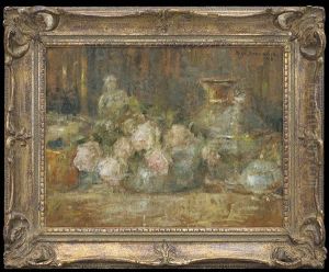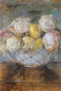 Martwa Natura Z Bialymi Rozami W Blekitnej Wazie