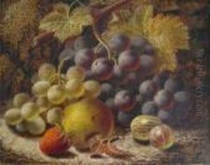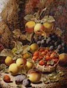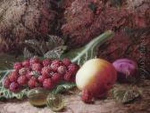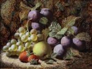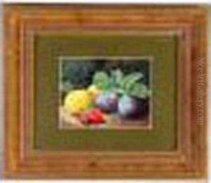 Damsons, Greengages, A Peach And A Strawberry On A Mossy Bank