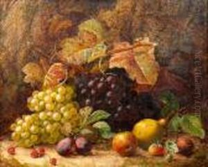Plums, Grapes, A Peach And Gooseberries On A Mossy Bank