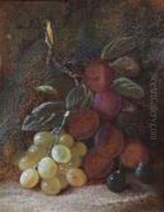 Plums, Grapes And Gooseberries On A Mossy Bank