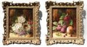 Primroses And Lilac; Grapes, Apples, Plums Anda Strawberry