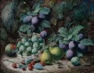 Plums, Gooseberries, A Peach And A Greengage Against A Mossy Bank
