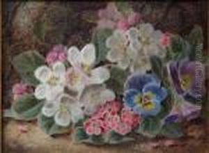 A Spray Of Primroses And Pansies On An Earthy Bank