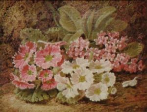 Still Life Of Primulas And A Bird's Nest On A Mossy Bank