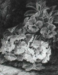 A Still Life With Primroses On A Mossy Bank