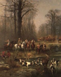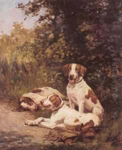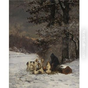 Jagdszene - Ein Blaser Hutet Wahrend Der Rast Die Hunde
