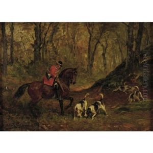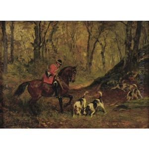 A Huntsman With Hounds In A Winter Landscape