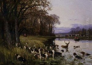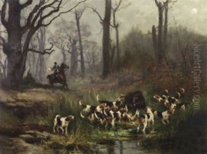 Veneur Et Sa Meute A La Riviere
