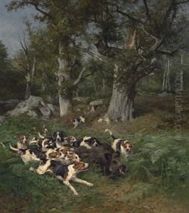 Chiens De Chasse A Courre Attaquant Un Sanglier