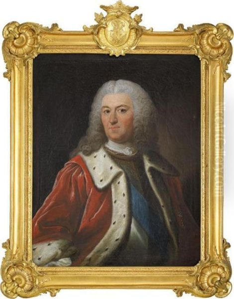 Portratt Av Riksradet Greve Axel Lowen I Hermelinbramad Rock Barandes Serafimerriddarens Ljusbla Ordensband - Midjebild