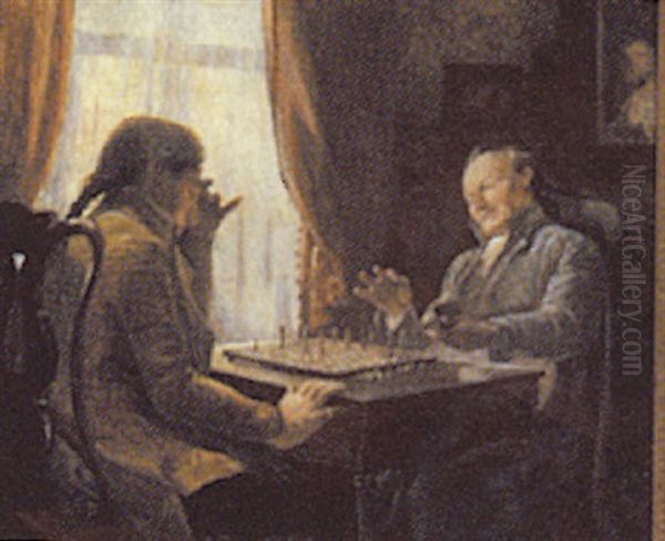 Bring the timeless beauty of Oluf Simony Jensen's Interior Med To Herrer Der Spiller Skak into your home with a handmade oil painting reproduction. Carefully recreated on canvas by skilled artists using traditional techniques, this piece captures the delicate brushwork, subtle light, and vibrant color of the original masterpiece. With museum-level quality and rich texture, it brings elegance and artistic depth to any space. Enjoy free shipping and make this masterpiece a part of your personal collection.