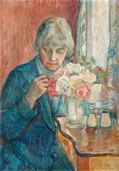 Bring the timeless beauty of Oluf Wold-Torne's Kris Syr (dam Vid Rosbukett) into your home with a handmade oil painting reproduction. Carefully recreated on canvas by skilled artists using traditional techniques, this piece captures the delicate brushwork, subtle light, and vibrant color of the original masterpiece. With museum-level quality and rich texture, it brings elegance and artistic depth to any space. Enjoy free shipping and make this masterpiece a part of your personal collection.