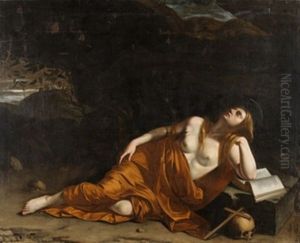 A Woman Tuning A Lute, Seated At A Draped Table With Openmanuscripts, A Violin And Wind Instruments