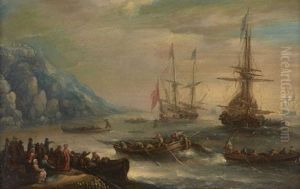 A Coastal Inlet With Shipping At Anchor (+ A Rocky Coastline With Shipping At Anchor Beyond; Pair)