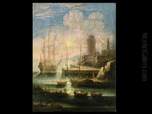 Provisioning A Galleon In An Inlet, Italian Port View Beyond