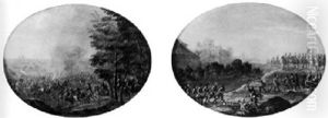 A Moonlit Coastal Landscape With A Fort Under Siege