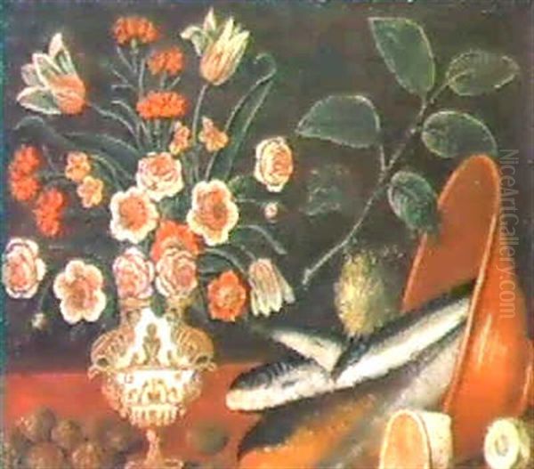 Natura Morta Con Pesci E Vaso Di Fiori