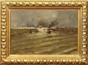Oscar Ricciardi was an Italian painter known for his landscapes, marine art, and orientalist scenes. Born on July 24, 1864, in Naples, Italy, Ricciardi was exposed to art at a young age, growing up in a city with a rich artistic heritage. He studied at the Academy of Fine Arts in Naples under the guidance of renowned artists such as Domenico Morelli and Filippo Palizzi, who were instrumental in shaping his early artistic style.