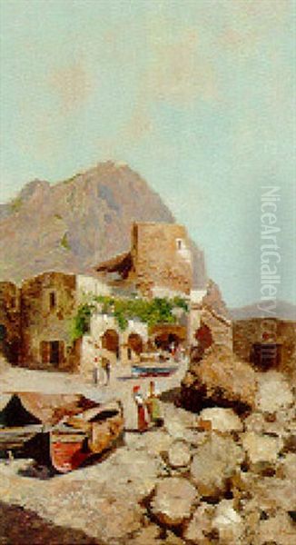 Figures On A Quay With A Villa Beyond