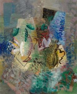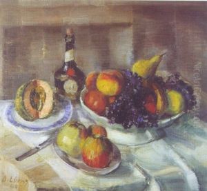 Stillleben Mit Fruchten Und Flasche Auf Einem Tisch