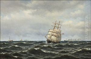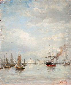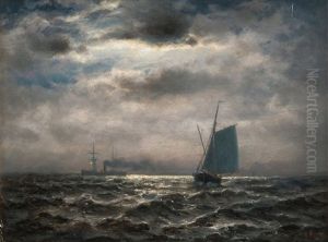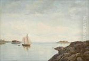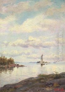 Dampfer, Segelboot Und Kahn An Finnischer Kuste