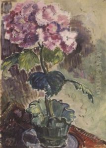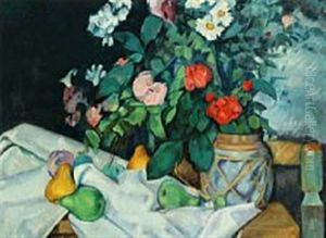 Stillleben Mit Fransendecke, Blumentopfen Und Torso