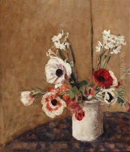 Blumenstilleben Mit Kanne Und Gepunktetem Krug