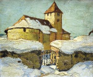 Winterlandschaft Mit Schneebedecktem Strohmandl