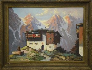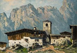 Gehoft Vor Aufragendem Gebirgsmassiv