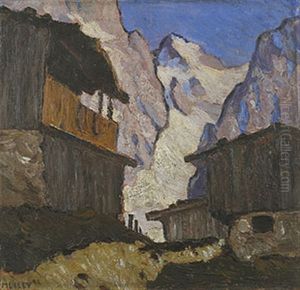 Bergbauernhof Vor Machtiger Gebirgskulisse Im Abendlicht