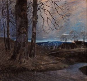 In Den Voralpen - Bewaldete Seelandschaft Mit Marterl