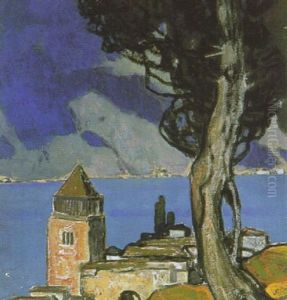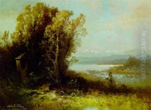 Landschaft Mit Blick Auf Eine Burg, Im Hintergrund Ein Sonniges Tal