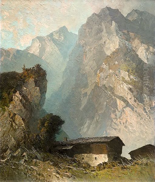 Gehoft Vor Aufragendem Gebirgsmassiv Oil Painting by Oskar Mulley