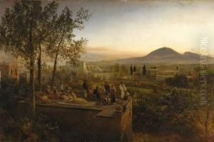 Blick Auf Den Golf Von Neapel, Von Posilippo Aus Gesehen, Im Vordergrund Reiche Figurliche Staffage