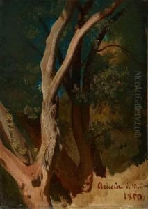 Figures Resting In A Forest Glade, Castel Gandalfo In The Background
