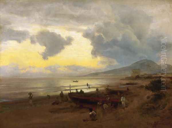 Bring the timeless beauty of Oswald Achenbach's Sunset on the Shore into your home with a handmade oil painting reproduction. Carefully recreated on canvas by skilled artists using traditional techniques, this piece captures the delicate brushwork, subtle light, and vibrant color of the original masterpiece. With museum-level quality and rich texture, it brings elegance and artistic depth to any space. Enjoy free shipping and make this masterpiece a part of your personal collection.