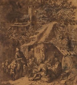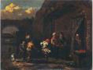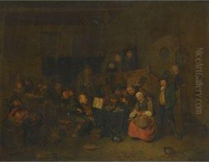 A Tyrolean Tavern Scene With Peasants Dancing