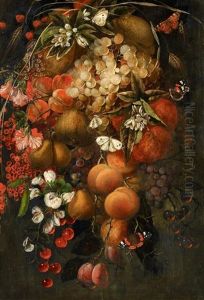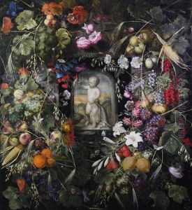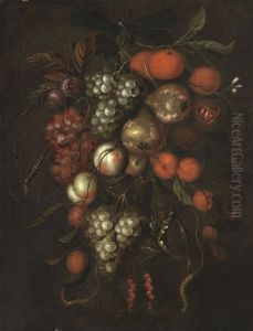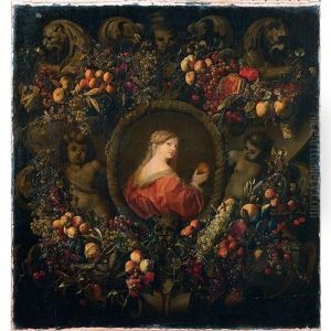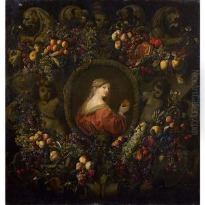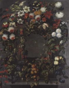 A Garland Of Flowers And Fruit Around A Stone Niche With Butterflies, A Snake And A Spider