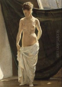 Kunstneren Ved Staffeliet, En Bondefamilie Beundrer Resultatet