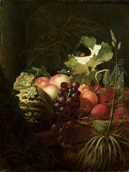 Natura Morta Con Uva, Melone, Pesche, Mele, Susine, Ciliegie E Chiocciola Su Foglia D'uva