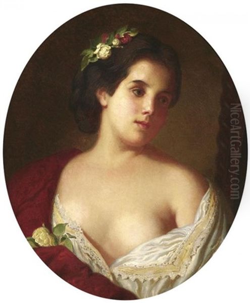 Portrat Einer Jungen Dame Mit Rose Im Haar
